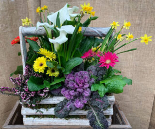 Spring Arrangment – Gerbera Dasies, Calla, Tete a Tetes
