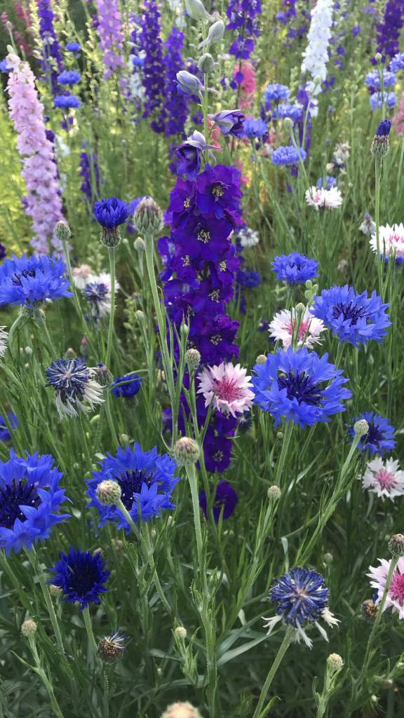 Published May 25, 2018 at 576 × 1024 in Better Late Than Never Garden – Bachelor Buttons and Larkspur.