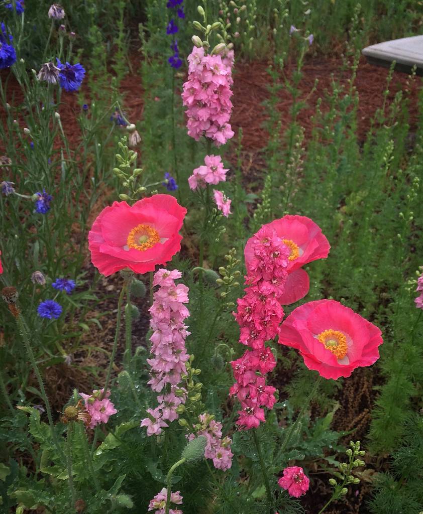 Better Late Than Never Garden – Spring 2017 Larkspur, Poppies, Bachelor Buttons